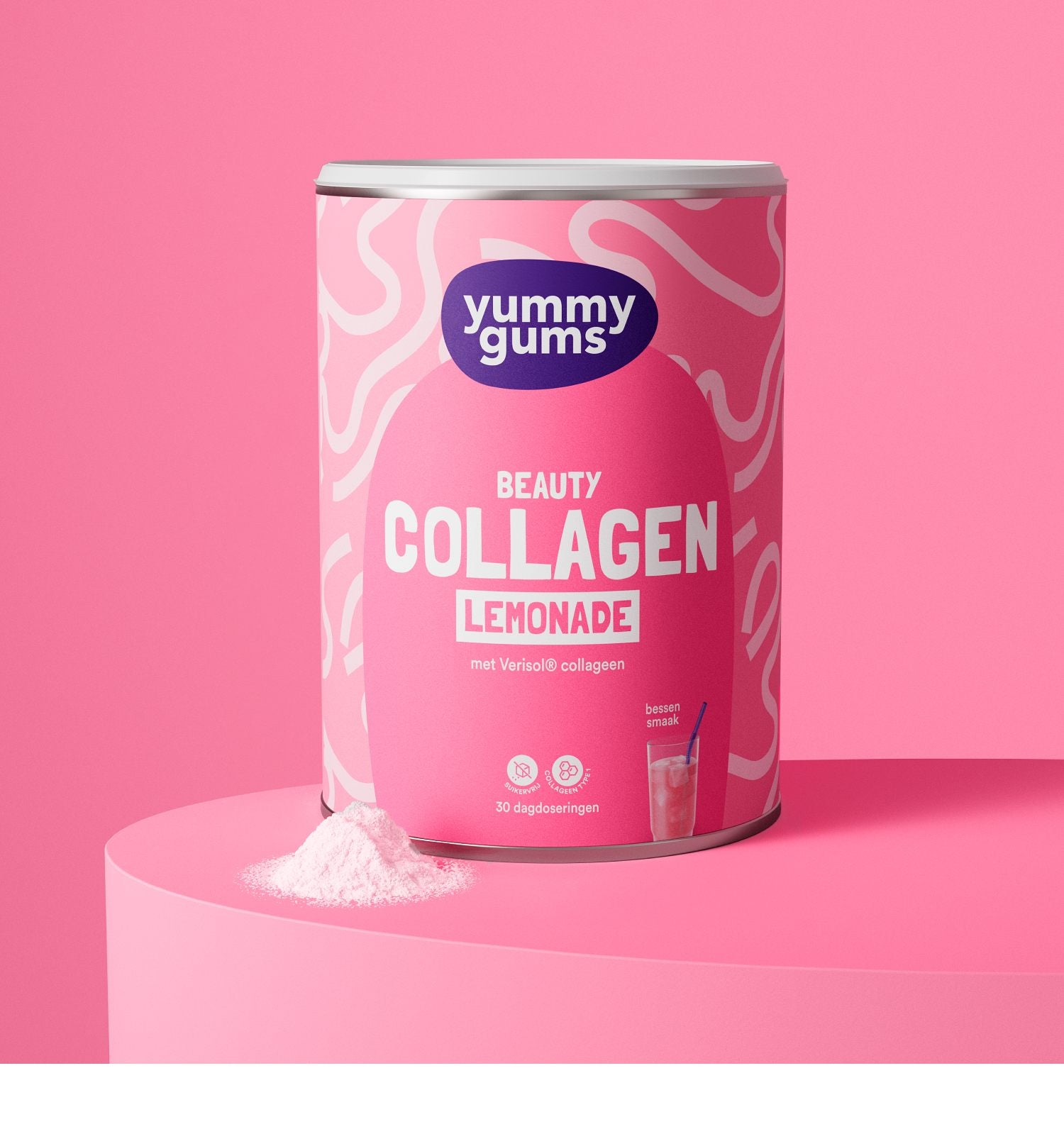 Daarnaast zijn er ook gummies die collageen bevatten zoals Yummygums Collagen gummies. Deze bevatten vitamine C¹ en marine collageen, afkomstig van vis. Dit helpt bij de vorming van collageen en versterkt de huid¹.