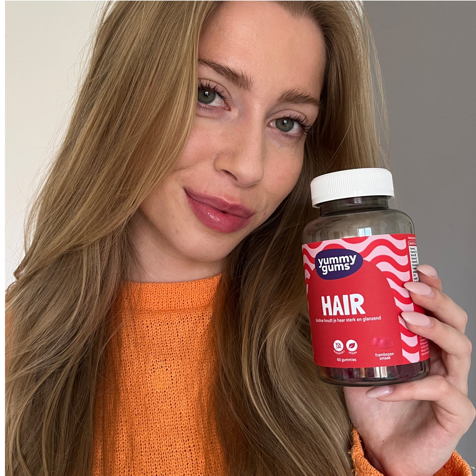 Yummygums Hair zorgt voor glanzend, gezond haar en ondersteunt de haargroei en veerkracht. Uit klantenonderzoek (2020) is gebleken dat ruim 80% van de Yummygums Hair gebruikers het verschil ziet in hun haar, huid of nagels. Om het optimale resultaat te behalen is het belangrijk om de gummies minimaal 3 maanden te gebruiken. Na maand 1 wordt meestal het eerste effect gezien in de hardheid van de nagels en vermindering van scheuren of broosheid. Na maand 3 kan je goed de effecten op het haar in glans, volheid en haargroei beoordelen.